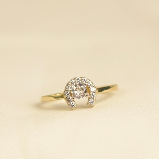 Anillo herradura con zirconias incrustadas oro 10k