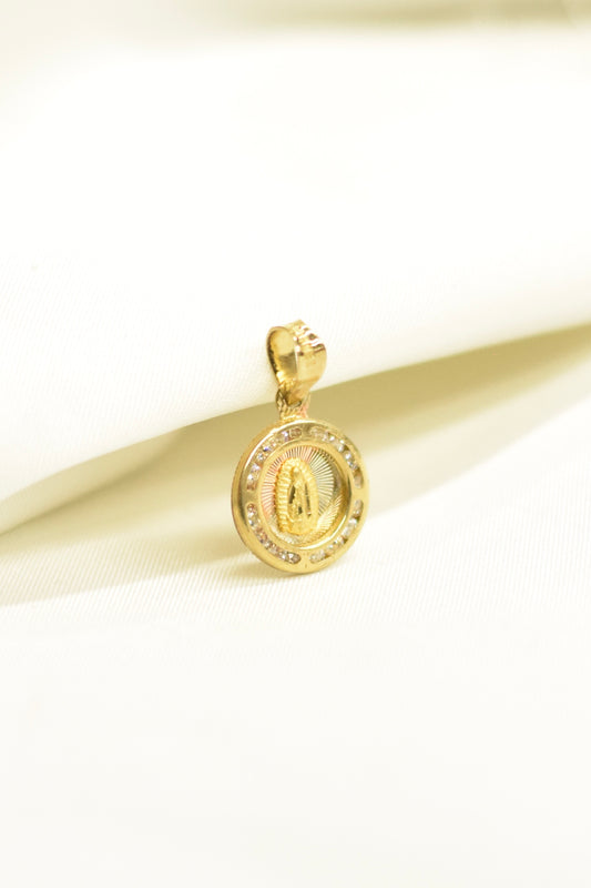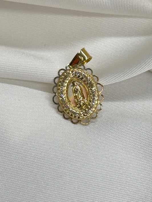 Medalla de la Virgen de Guadalupe rodeada de zirconias